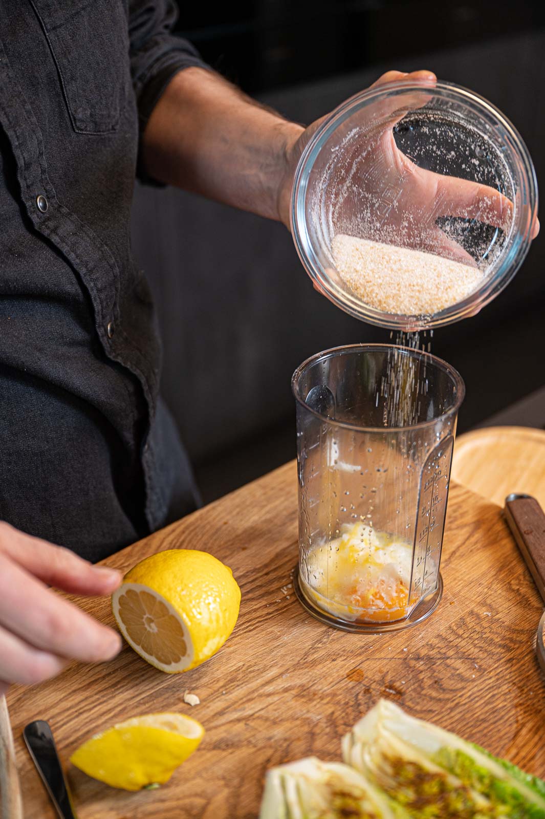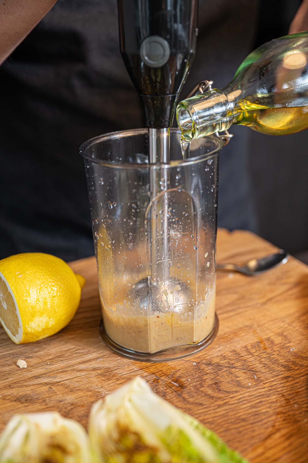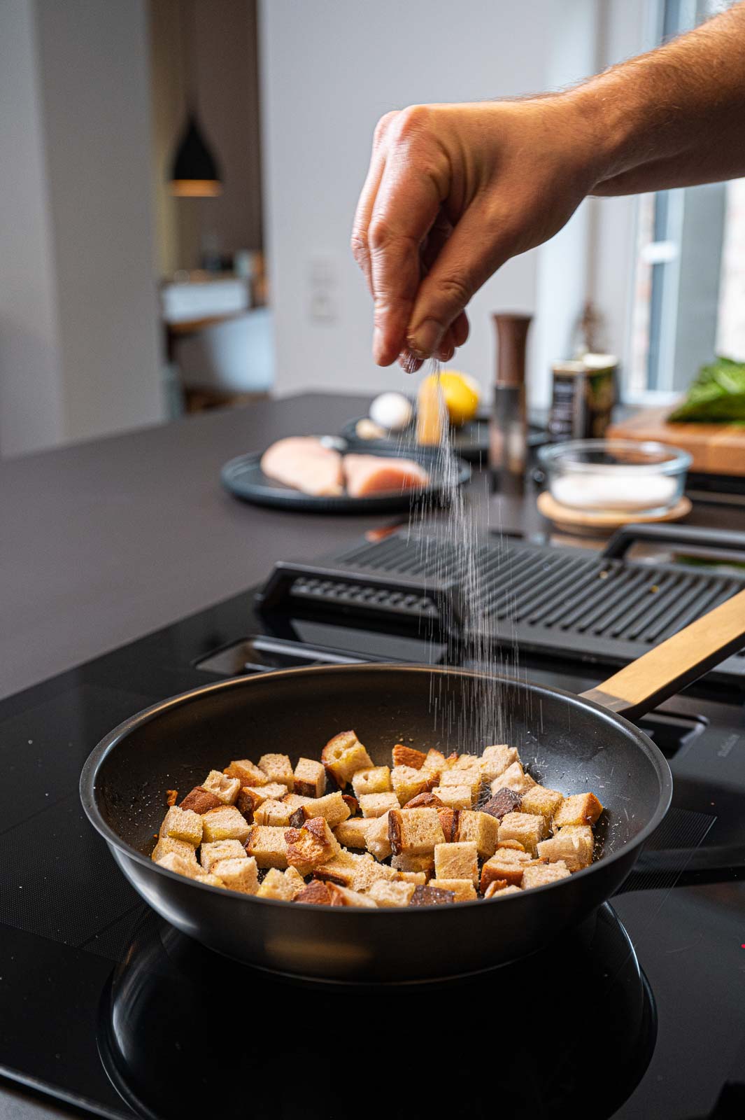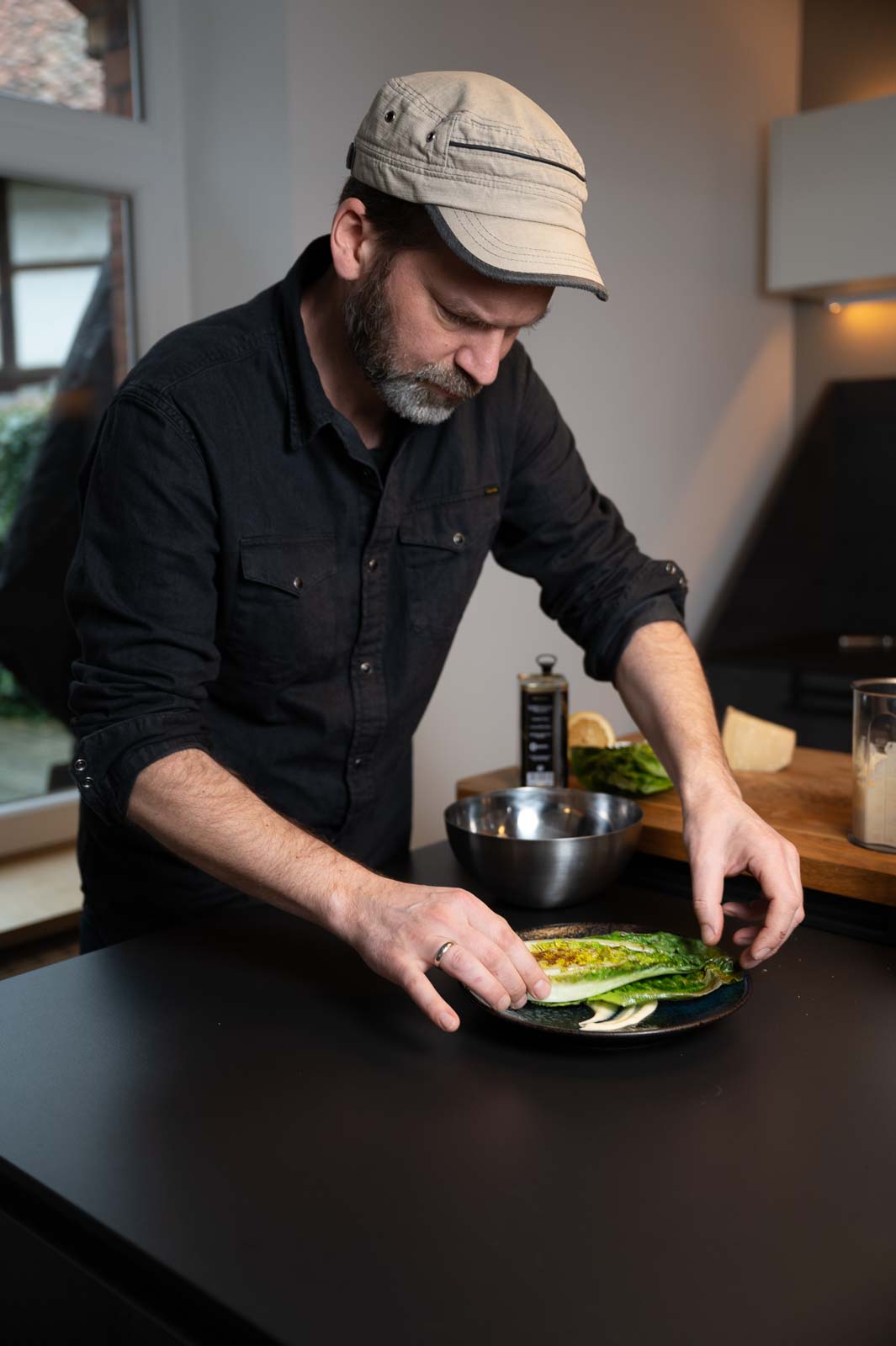 Frische und leichte Küche für den Start ins neue Jahr im Journal der Braunschweiger Baugenossenschaft: Caesar Salad deluxe mit selbstgemachtem Dressing und leicht angebratenen Salatherzen.