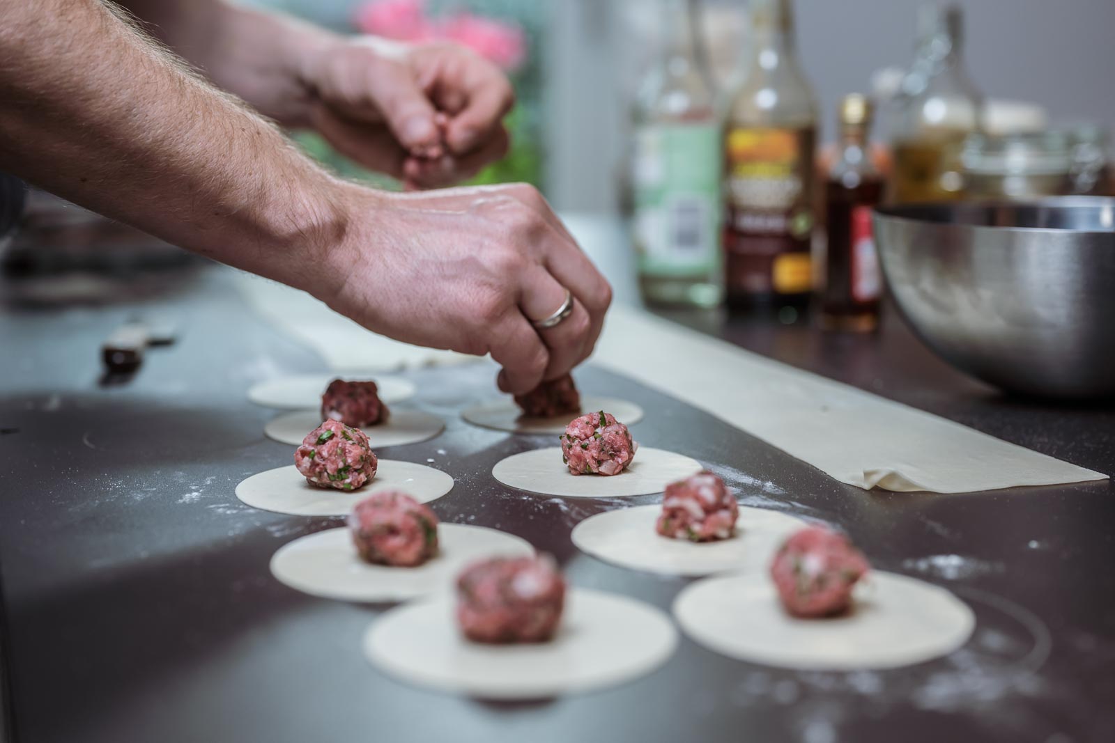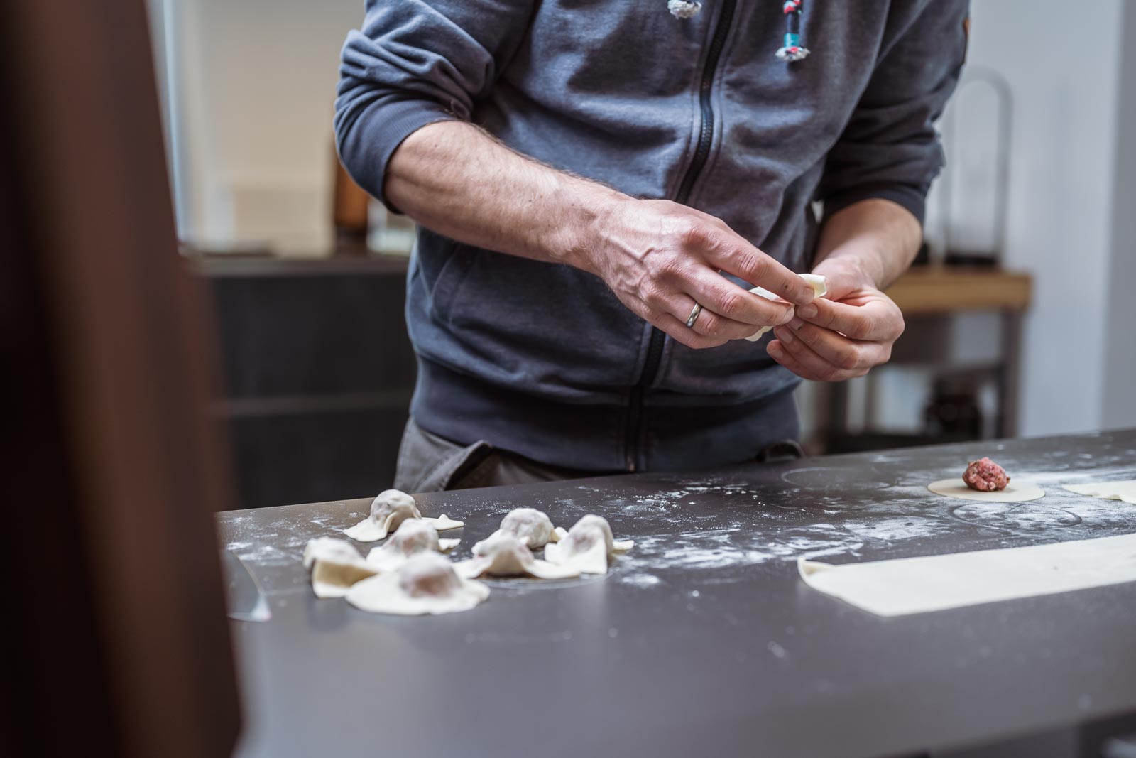 Chinesische Teigtaschen mit deutscher Falttechnik.