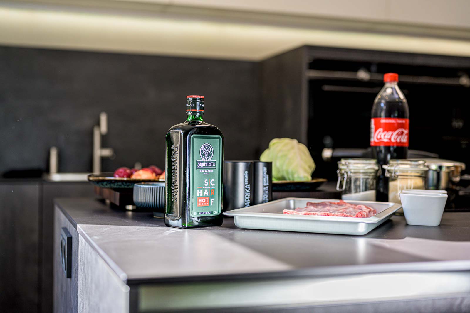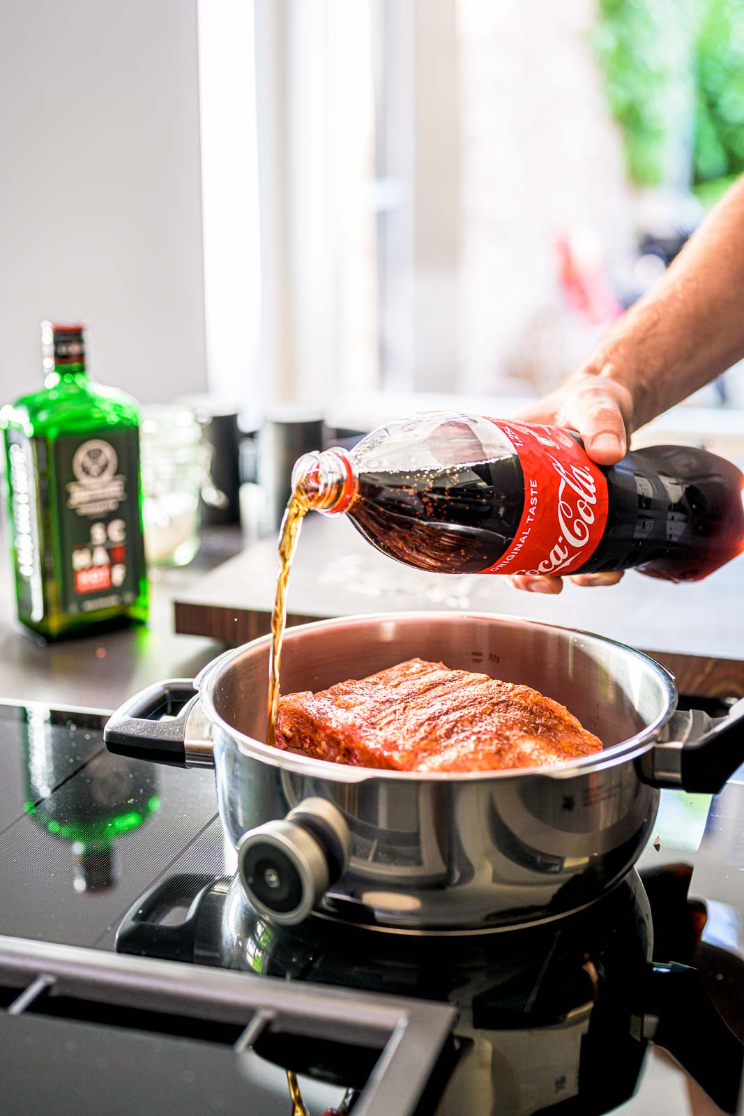 Mit Cole Slaw, eiskaltem Jägermeister und der BBQ-Sauce servieren.