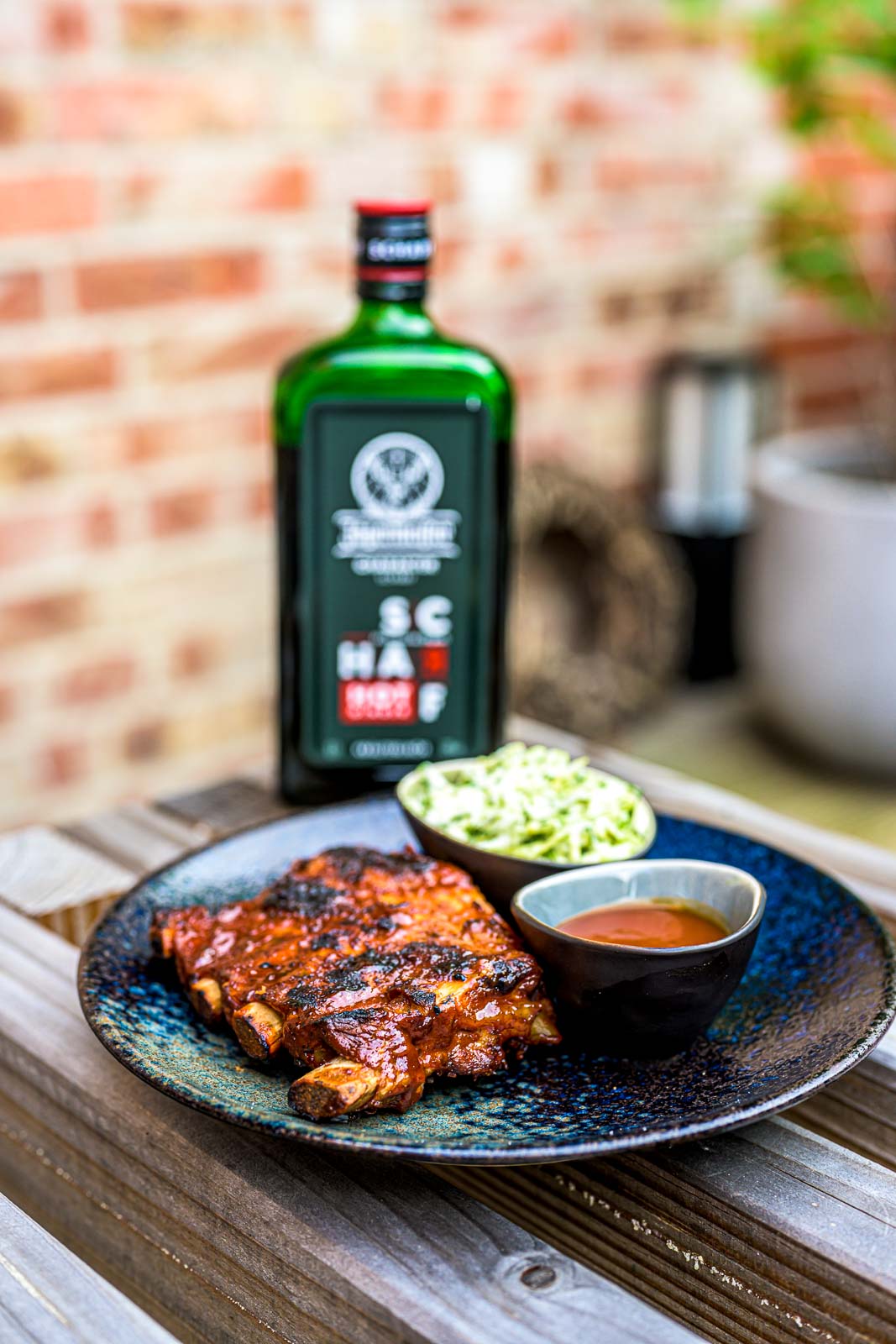 Gegrillte Rippchen mit scharfer Jägermeister-BBQ-Sauce und Cole Slaw