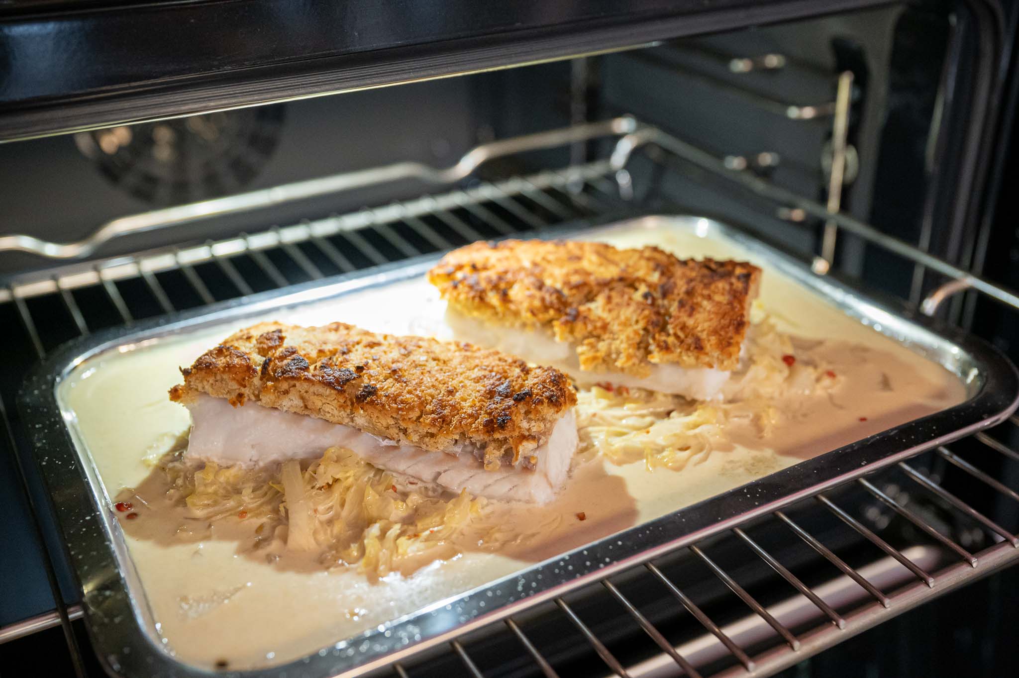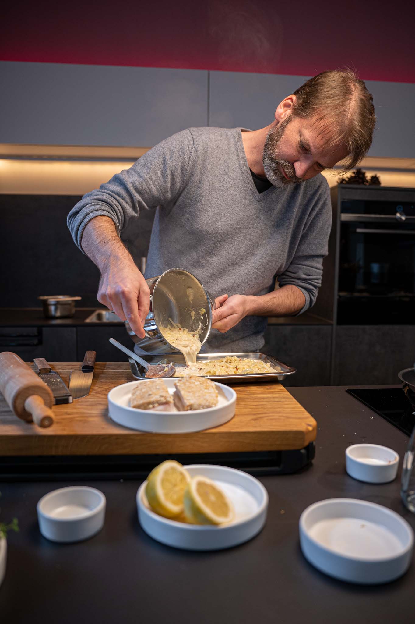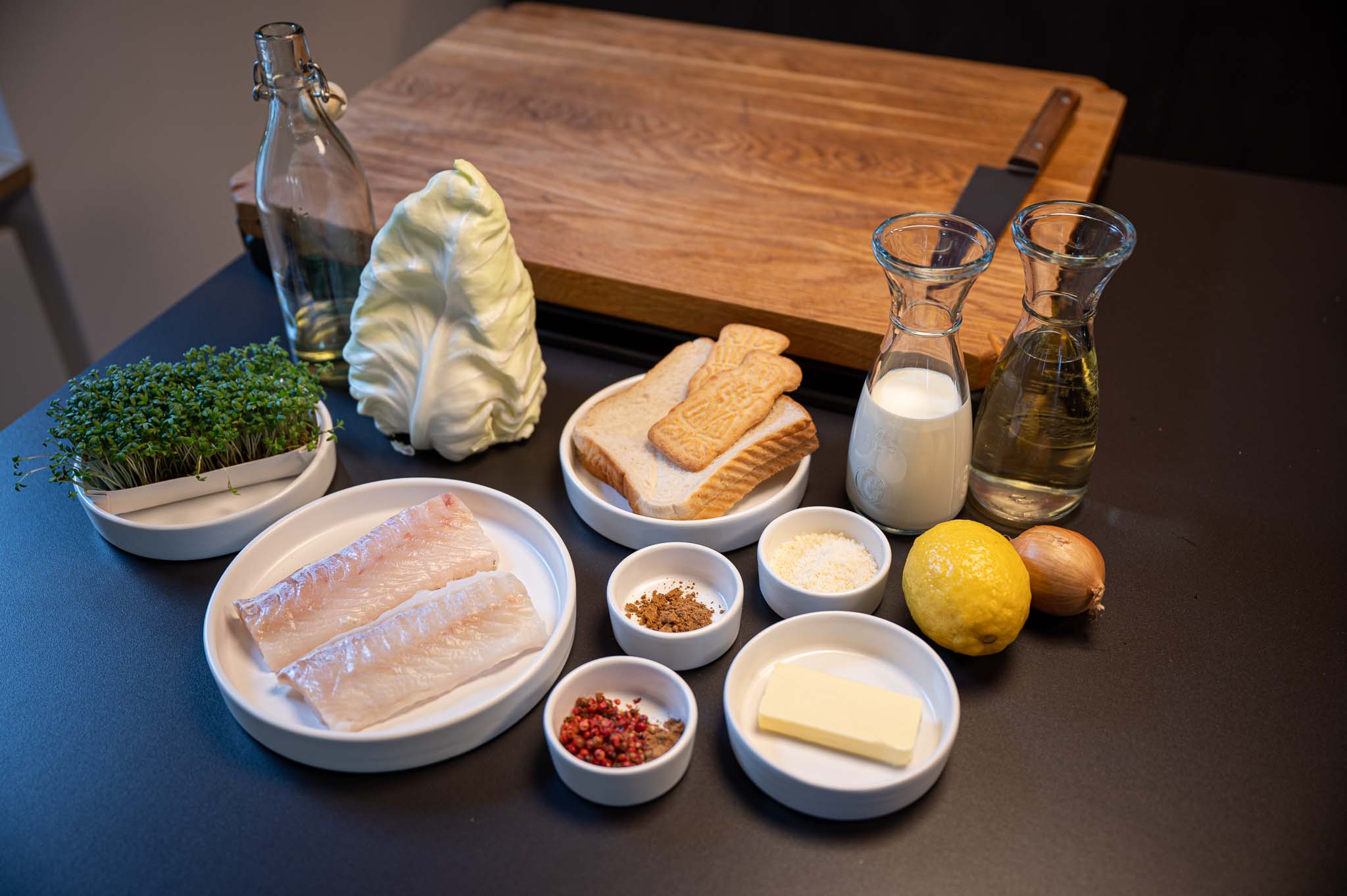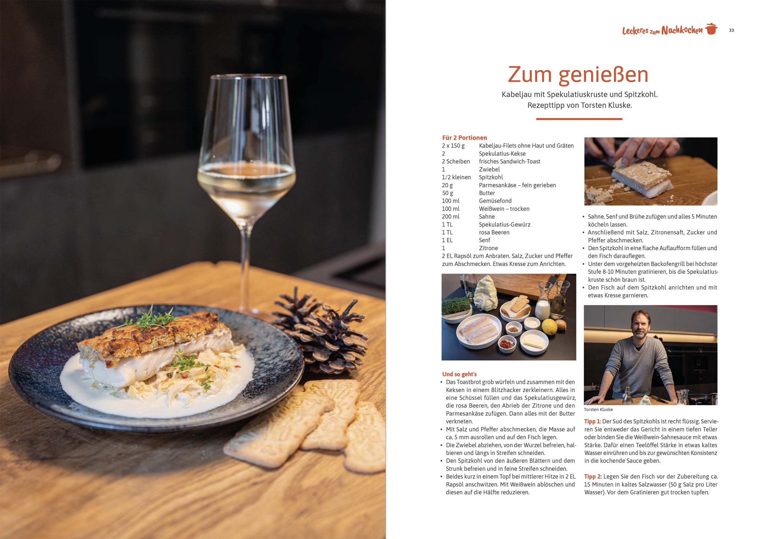 Das Weihnachtsmenü für das Journal der Braunschweiger Baugenossenschaft: Kabeljau mit Spekulatiuskruste auf Spitzkohl. Eine leckere und leichte Alternative zum klassischen Weihnachtsbraten.