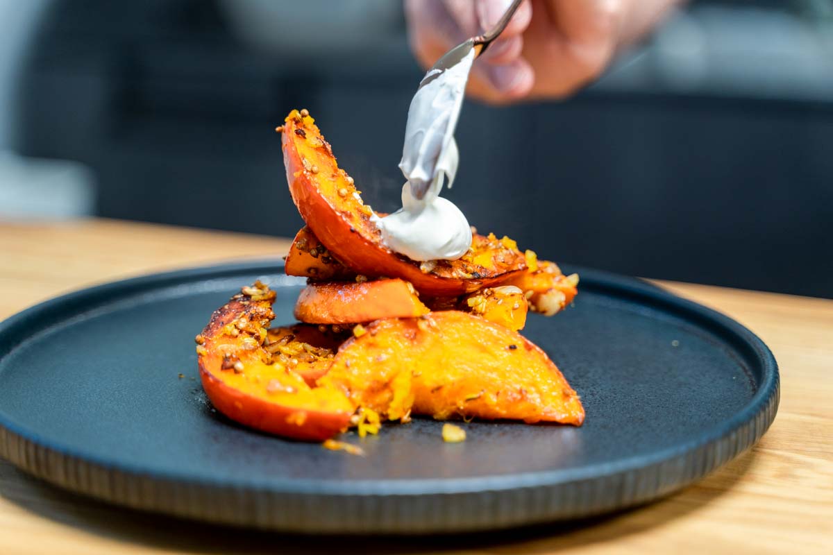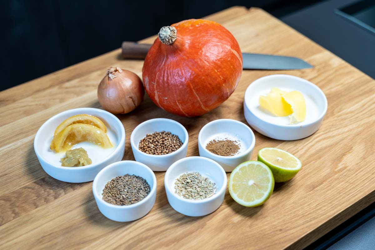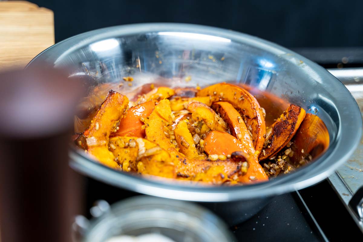Ras el-Hanout, eine Gewürzmischung aus Nord-Afrika, gibt dem Kürbis die besondere Note.