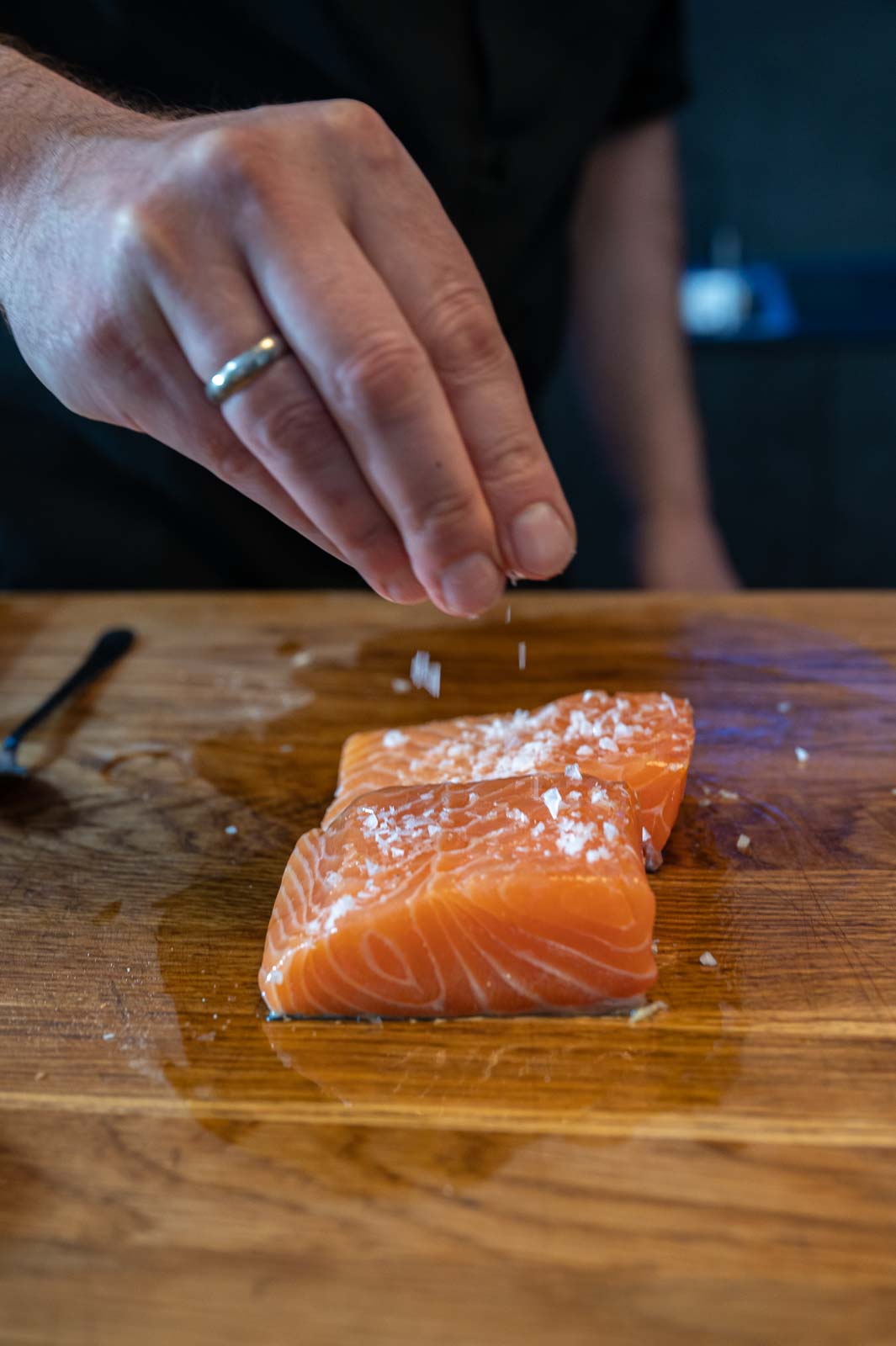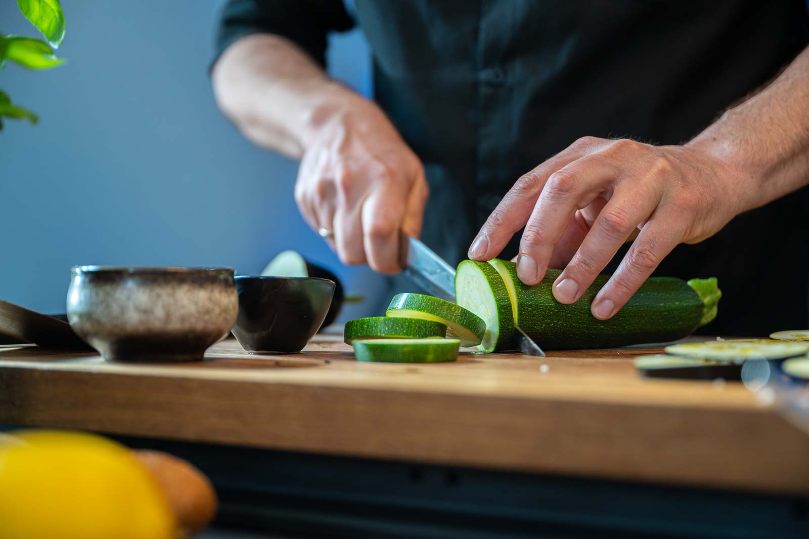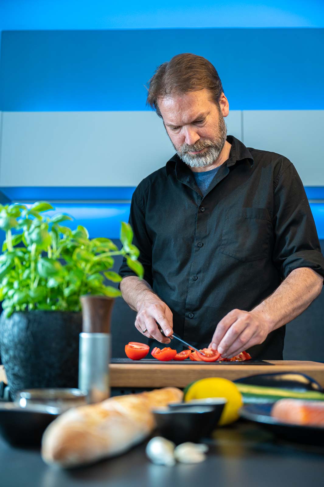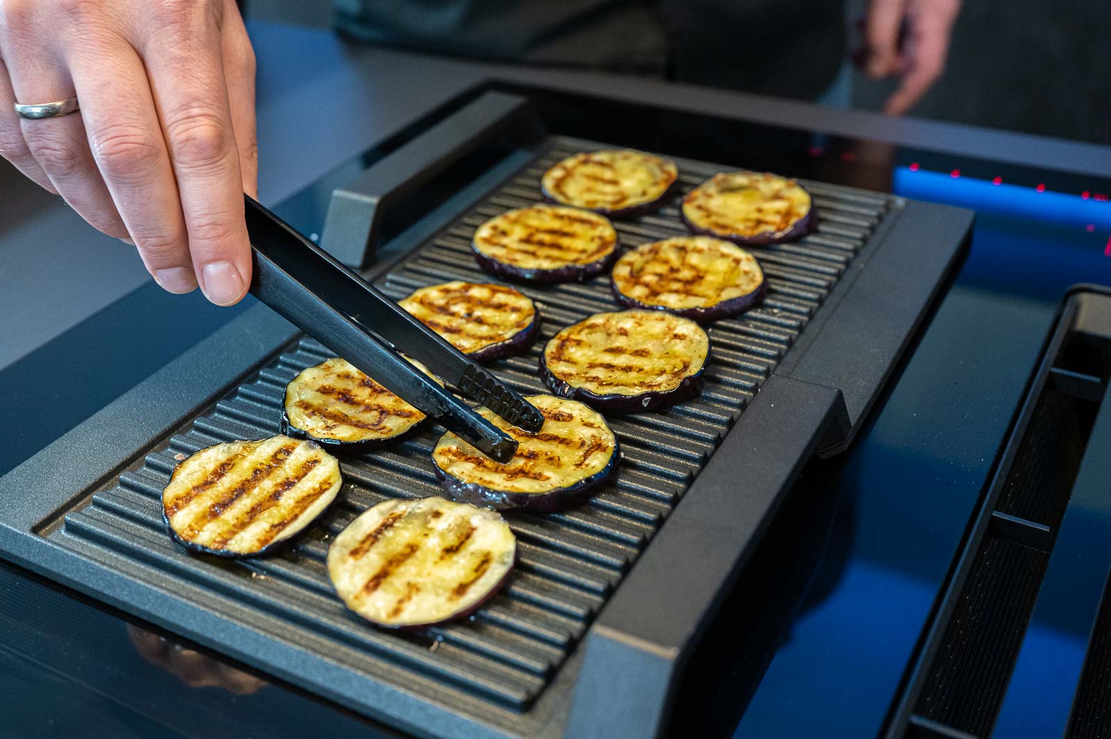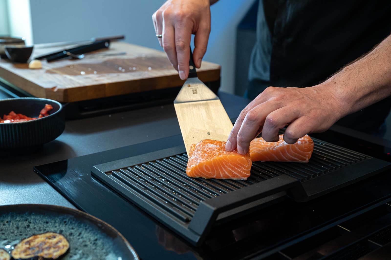 Exklusive Inspiration zum Indoor-Grillen – so nennt es XXXLutz auf seiner Webseite. Für die Kooperation der Möbelhauses mit Siemens grillt Torsten Kluske Lachs und Gemüse für ein geröstetem Ratatouille Baguette. Im Fokus neben dem Rezept steht natürlich wieder Hardware von Siemens Home: das inductionAir Plus Induktionskochfeld.