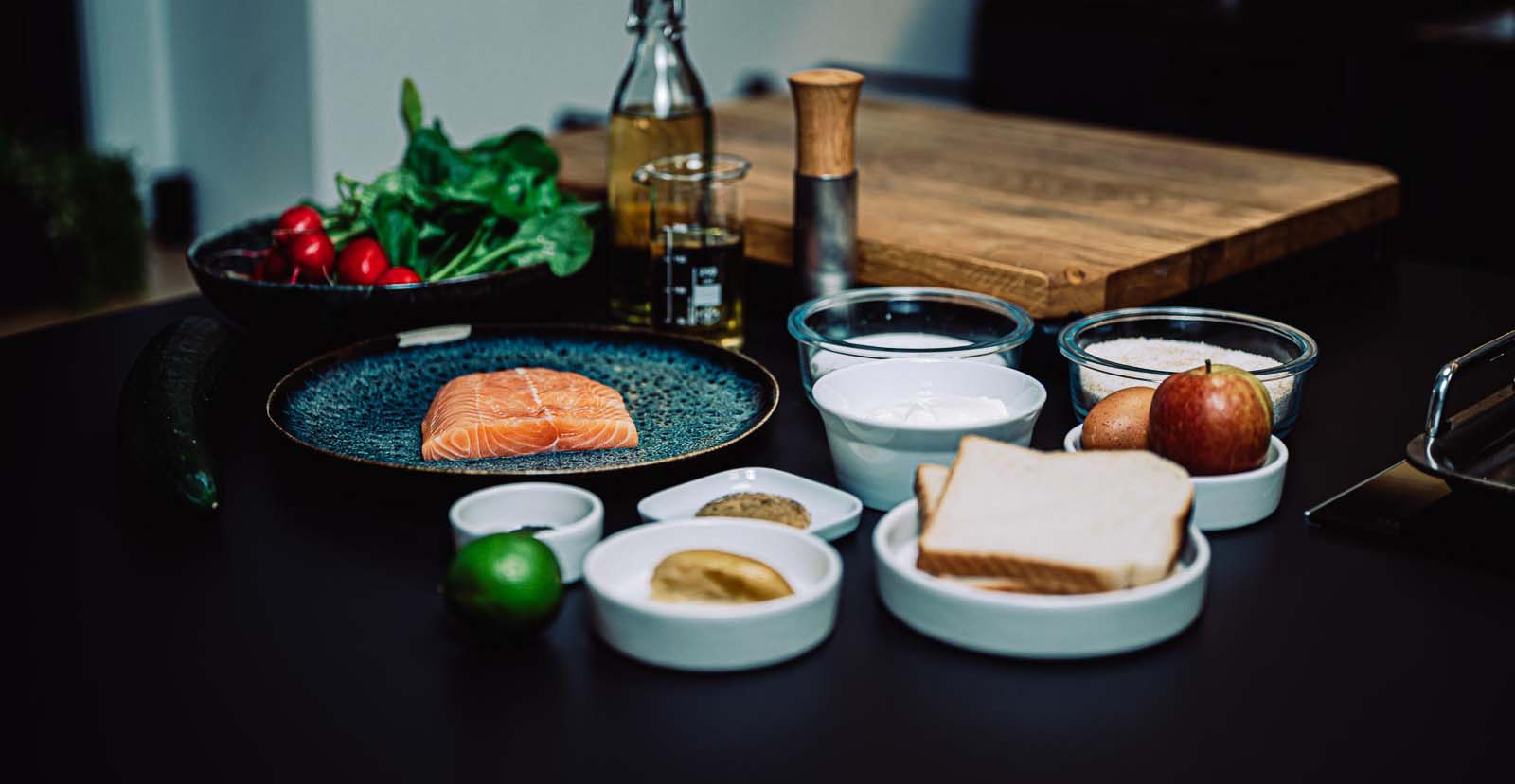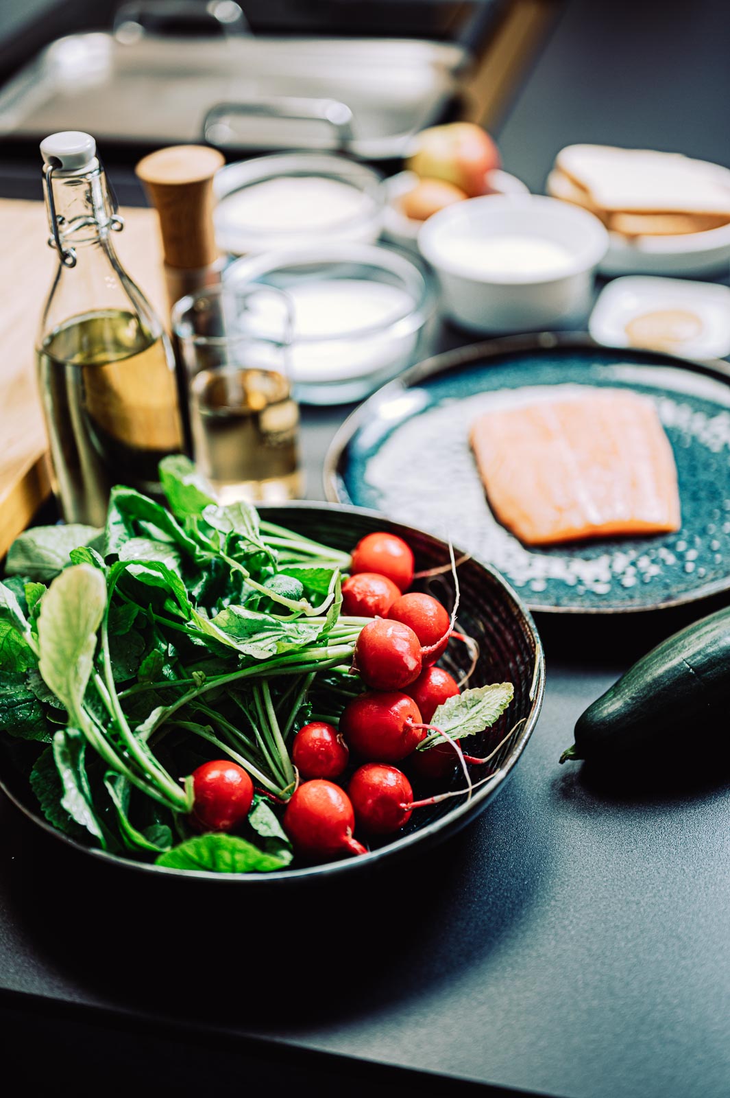 - 500 g Lachs o. Haut und Gräten (möglichst kalt)