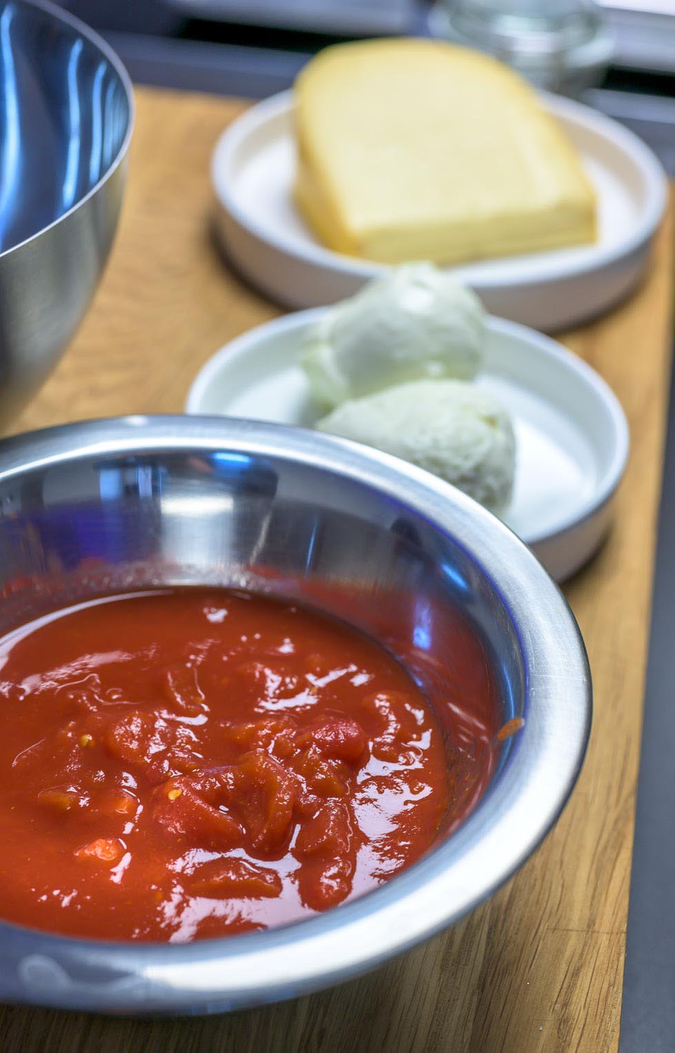 In der Zwischenzeit die Tomatensauce zubereiten.