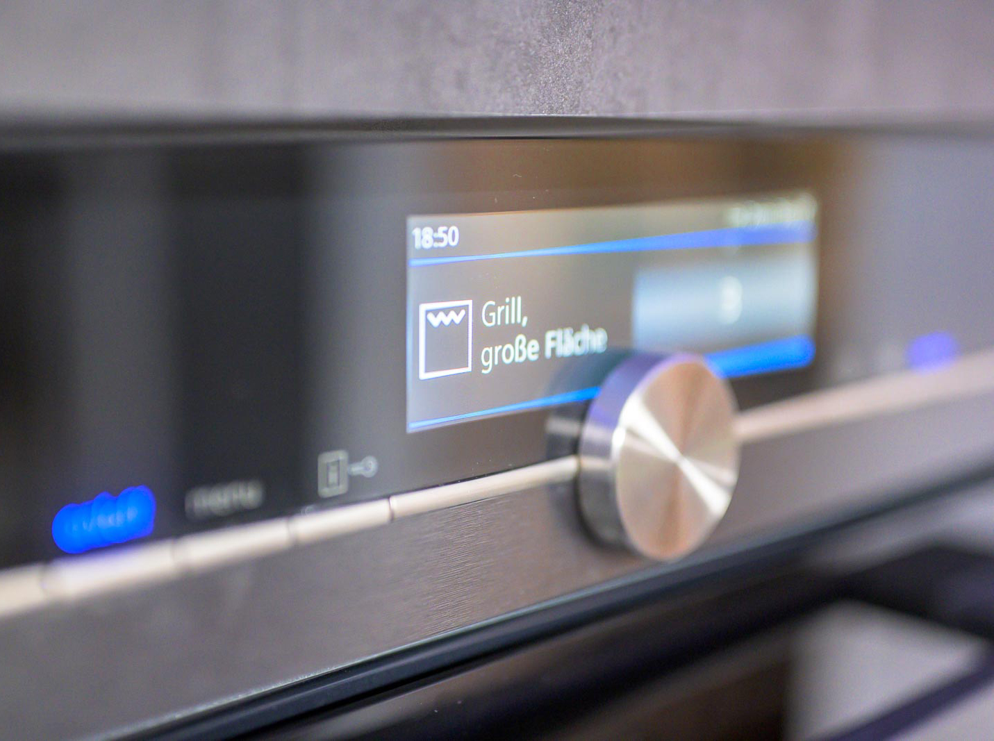 Dann die Pizza auf dem Teppan Yaki m vorgeheizten Backofen mit Grill bei voller Hitze auf einem Rost ca. 5 cm unterhalb der Heizspirale grillen, bis der Belag gebräunt ist. Dies dauert ca. 2-3 min.